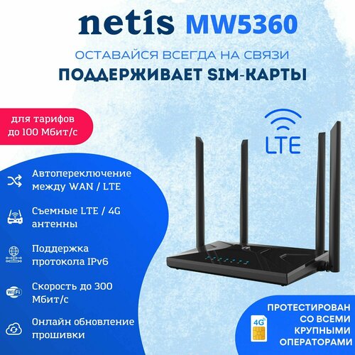 WiFi роутер NETIS MW5360 + сим карта с интернетом и раздачей 50ГБ за 450р/мес