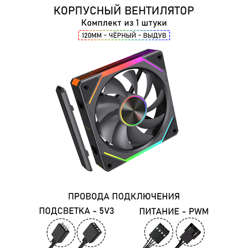 Модульный вентилятор - 5RS Inline - 120мм, A-RGB, PWM+5v3, Комплект, чёрный, на выдув из корпуса