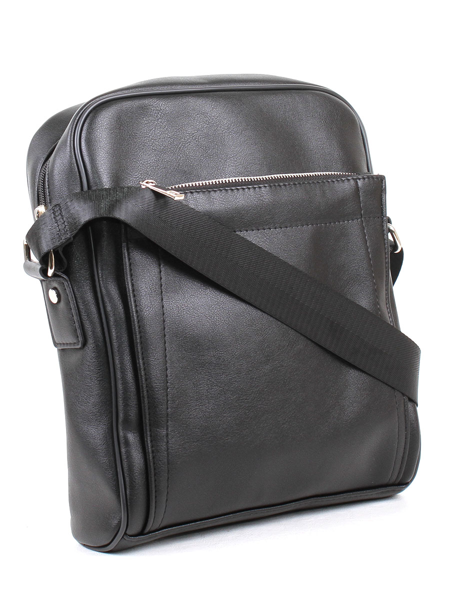 Сумка мужская с одним отделением на молнии. Дополнительно закрывается на клапан с двумя магнитными кнопками. Легко вмещает формат А4. На передней стенке - два открытых кармана, по бокам - карманы под клапанами с магнитной кнопкой. Сзади - карман на молнии. Внутри - два открытых кармана и карман на молнии. Максимальная высота регулируемой ручки 65 см.