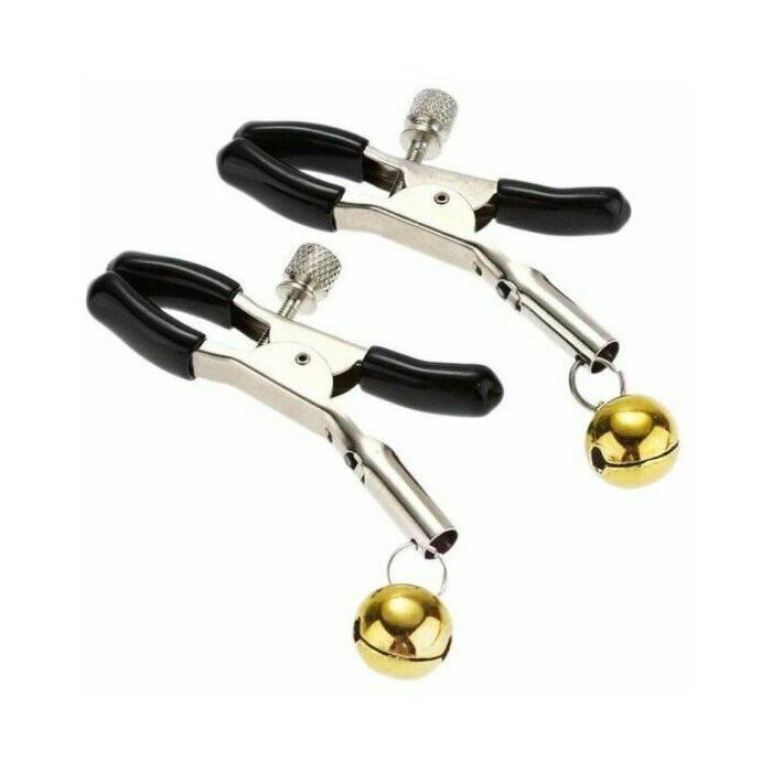 Зажимы для сосков KISSEXPO серебристо-черные с бубенчиком золотистым 600006752238