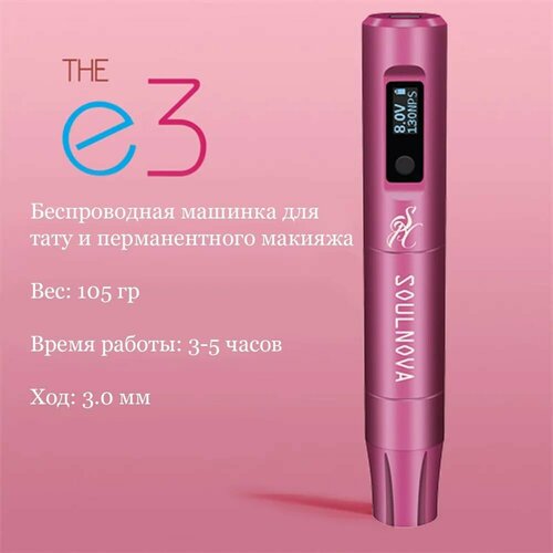 Беспроводная машинка Ava Soulnova E3 для тату и татуажа. Розовая роза