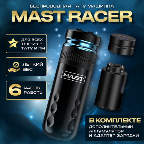 Беспроводная машинка для тату и татуажа Mast Racer Blue с дополнительным аккумулятором