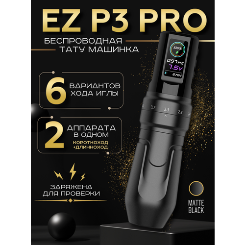 Беспроводная тату машинка EZ P3 PRO Matte Black с регулируемым ходом иглы