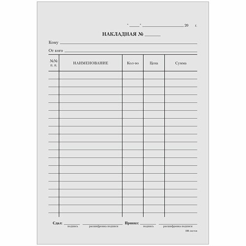 Бланк "Накладная" OfficeSpace, А5, газетка, 100 л. в 1 шт, в пленке т/у (1 шт)