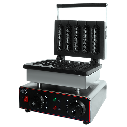 Аппарат для корн-догов Crazy Pan CP-CD05 на 5 сосисок, нержавейка, антипригарное покрытие, таймер, размер формы 40x145мм, чугун, 1.55 кВ, 220В