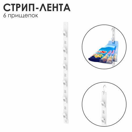 Стрип-лента подвесная L=38, 6 прищепок, цвет белый