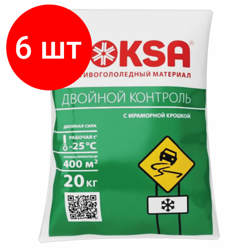 Материал противогололёдный 20 кг UOKSA Двойной Контроль, комплект 6 шт, до -25°C, хлорид кальция + соли + мраморная крошка, 91833