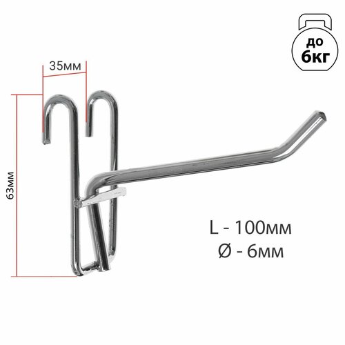 Крючок двойной 150 мм для экономпанели и перфорированной панели. Комплект 10шт.