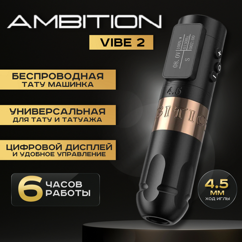 Беспроводная тату машинка AMBITION Vibe 2 Gold для татуировки и перманентного макияжа