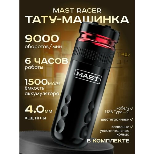 Беспроводная машинка для тату и татуажа Mast Racer Red с дополнительным аккумулятором