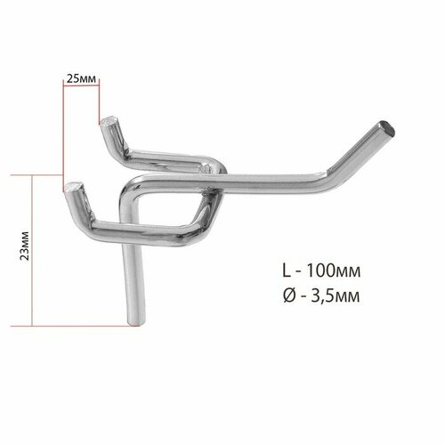 Крючок одинарный на перфорированную ДСП панель, шаг 25мм, d=4мм, L=100мм, цинк (10шт.)