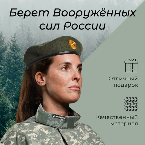 Берет бесшовный ВС РФ с кокардой, оливковый, шерстяной, 60 размер