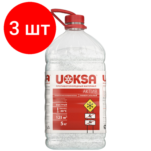 Комплект 3 штук, Реагент противогололедный UOKSA Актив -30°C 5кг бутылка