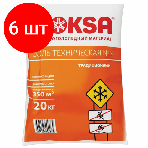 Комплект 6 шт, Материал противогололёдный 20 кг UOKSA соль техническая №3, мешок