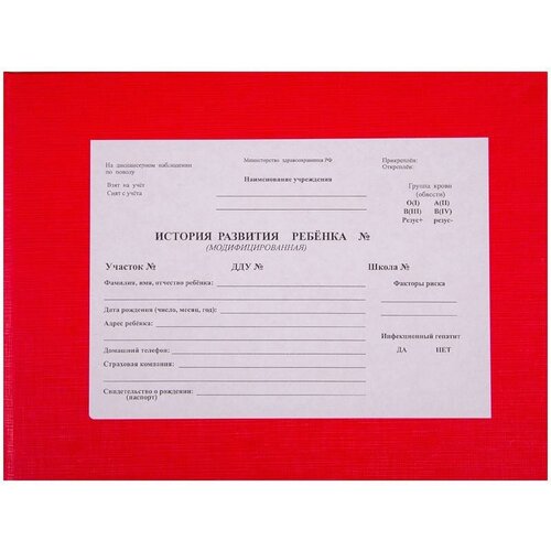 Медицинская карта история развития ребенка OfficeSpace, А5 205*150мм (ф.112), красная, тв. обл. БВ,196л