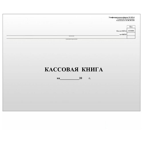 Кассовая книга (форма КО-4) OfficeSpace (А4, 96л, горизонтальная, скрепка) обложка картон (K-KK96_511), 10шт.