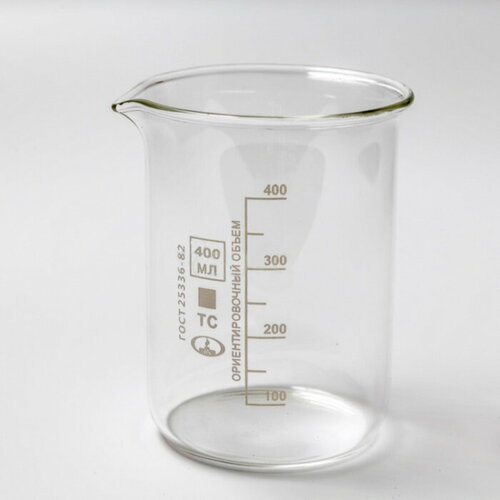 Стакан лабораторный Н-1-400 низкий с делениями и носиком ТС 400 мл.
