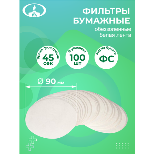 Фильтры бумажные обеззоленные белая лента диаметр 90 мм. 100 шт./упак.