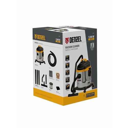 Пылесос строительный Denzel LVC15 1200 Вт, бак 15 л, шланг 2 м 28291