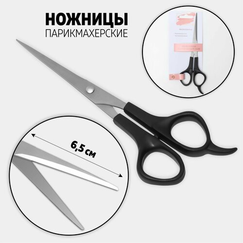 Ножницы парикмахерские с упором, лезвие — 6,5 см, цвет чёрный
