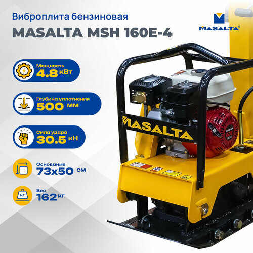 Виброплита реверсивная Masalta MSH160E-4 бензиновая (Honda GX200, 6,5 л. с, 162 кг, расширители)