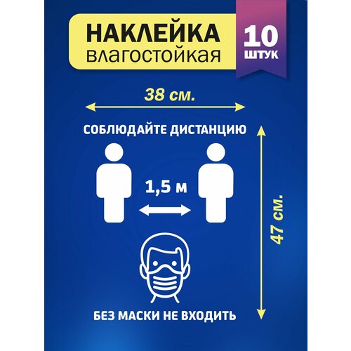 Наклейка "Соблюдайте дистанцию,"Без маски не входить",10шт