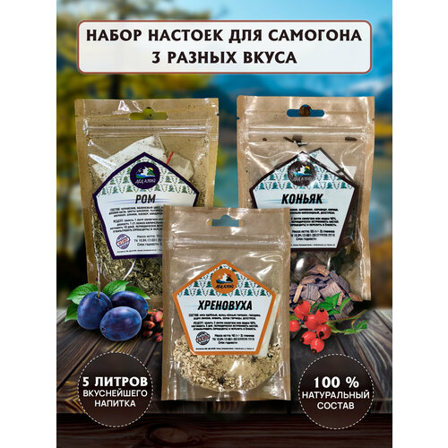 Набор для самогона из трав и специй Ром. Коньяк. Хреновуха 3 вида для настаивания алкоголя для подарка мужчине коллеге