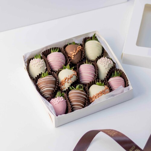 Клубника в шоколаде композиция "Ажур" в коробке - 12 шт