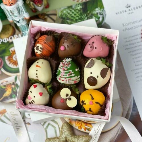 Новый год. Клубника в Шоколаде 9-12 шт. Бельгийский шоколад Callebaut. Подарочный Новогодний набор 1114. Leora Flowers дом цветочной моды