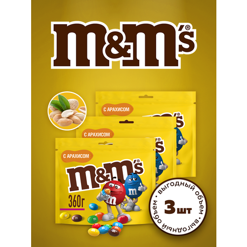 Драже M&M's с арахисом и молочным шоколадом, 360 г х 3 шт.
