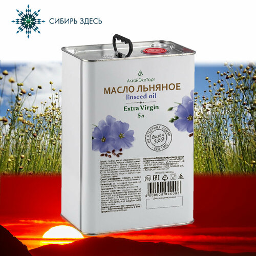 Льняное масло алтайское "Премиум" Extra Virgin. Селен, Омега 3,6,9 (5 литров)