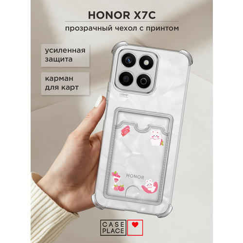 Чехол на Honor X7c (Хонор X7c) с картой и принтом Милый корейский кролик