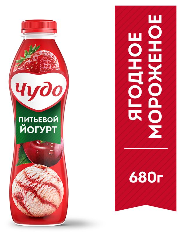 Питьевой йогурт Чудо Ягодное мороженое 1,9% 680 г