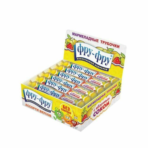 Ассорти Фру-Фру Мармеладная трубочка с яблочным соком ассорти, яблоко, 35 г, 12 шт. в уп.