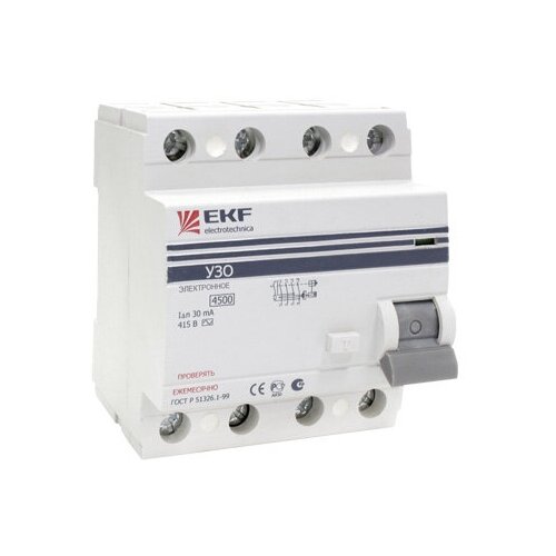 Устройство защитного отключения УЗО ВД-100 4 полюса, 32А, Тип AC, 30мА | код. elcb-4-32-30-em-pro | EKF (6шт. в упак.)