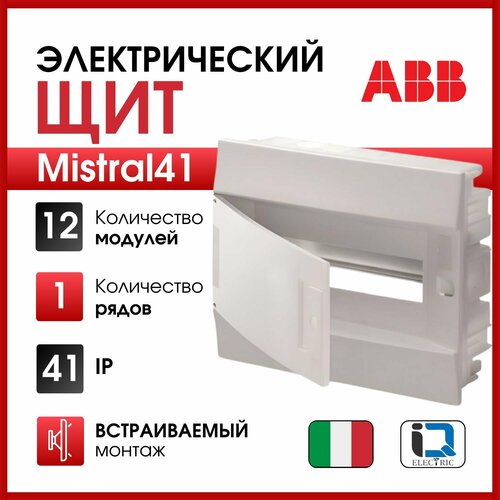 Распределительный шкаф ABB Mistral41 12 мод, IP41, встраиваемый, термопласт, белая дверь, с клеммами 1SLM004101A1103