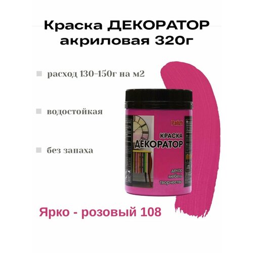 Краска-колер Декоратор акриловая быстросохнущая Palizh Ярко-розовый 0,32кг