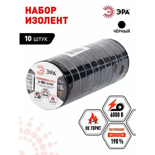 Изолента ПВХ ЭРА SET-1510Black набор черная 15мм х 10м 10 шт