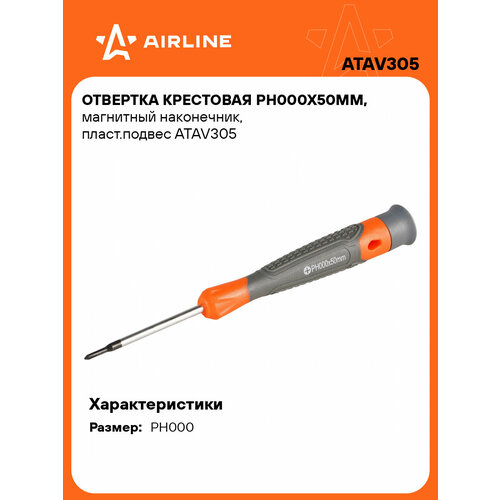 Отвертка крестовая PH000x50мм, магнитный наконечник, пласт. подвес ATAV305 AIRLINE