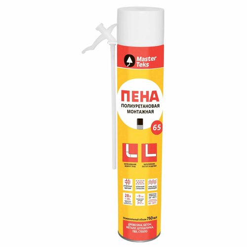 Пена монтажная бытовая Masterteks 65 всесезонная 750 мл