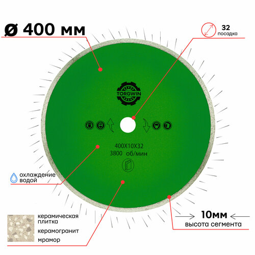 Диск алмазный сплошной 400 х 3,2 х 10 х 32/25,4 мм для гранита TORGWIN S98142