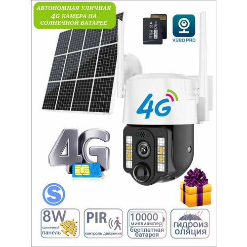 Камера видеонаблюдения уличная 4G на солнечной батарее, V380 PRO, IP66, 3MP 10