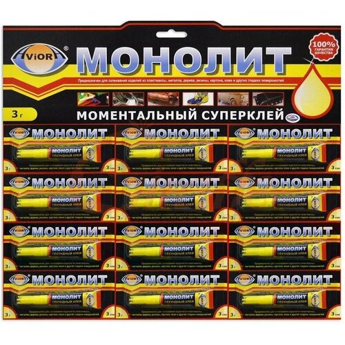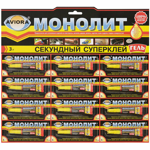 Моментальный суперклей AVIORA монолит 3 г, 12 штук на блистере
