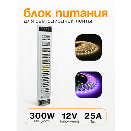 Блок питания для светодиодной ленты 12V 300W 310mm*53mm*22mm