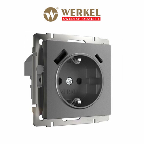 Розетка Werkel с заземлением, шторками и USB тип A+C (графит матовый) W1171764