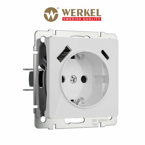 Розетка с заземлением, шторками и USB тип A+C Werkel W1171741 белый акрил IP20