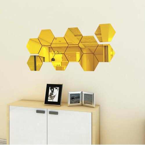 Декор настенный "Соты", зеркальный, 12 элементов, плитка 16 х 18 см, золото