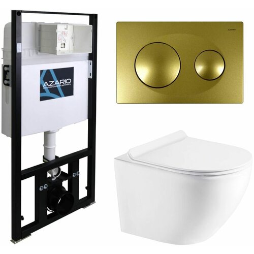 Готовый набор инсталляции Azario AZ-8010-1000 с золотой панелью смыва+унитаз подвесной Azario Grado AZ-0046