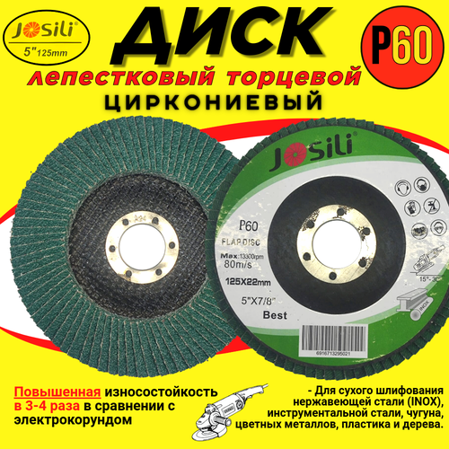 Диск лепестковый торцевой циркониевый по металлу 125мм Р60 JOSILi
