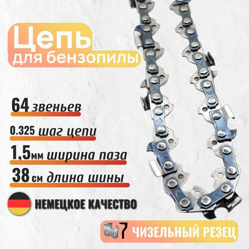 Цепь пильная для бензопилы 64 звеньев, шаг цепи 0.325 , ширина паза 1.5 мм